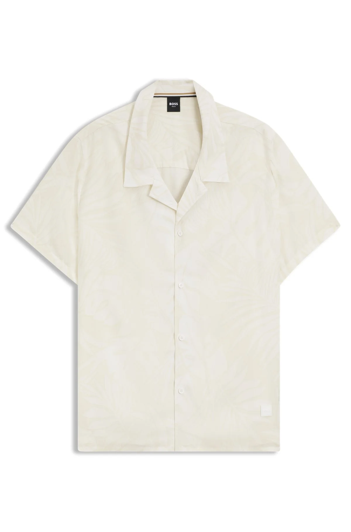 SIZE AND FIT The model wears a size M and is 6'2" tall with a, 36" chest, 31" waist and 38" hips. DETAILS Cut to a straight fit, this BOSS Menswear shirt has a statement print to match the coordinating swim shorts. Logo patch towards hem. Beach Shirt - 50535793 QUALITY & CARE INSTRUCTIONS Do Not Bleach Material: 100% Viscose Do Not Tumble Dry Do Not Dry Clean Iron Low Heat Machine Wash Cold