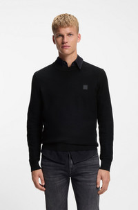 SIZE AND FIT The model wears a size M and is 6'0" tall with a, 31" chest, 26" waist and 35" hips. DETAILS Anion_S - 50527584 A regular-fit sweater with a logo badge by BOSS. Blended with cashmere, this piece is knitted with a fine structure all over. Regular fit Neckline: Crew neck Long sleeves Standard length QUALITY & CARE INSTRUCTIONS Quality: 95% Cotton, 5% Cashmere Do Not Bleach Cold, gentle machine wash; reduced spin speed. Do Not Tumble Dry Dry Clean Only Iron Low Heat