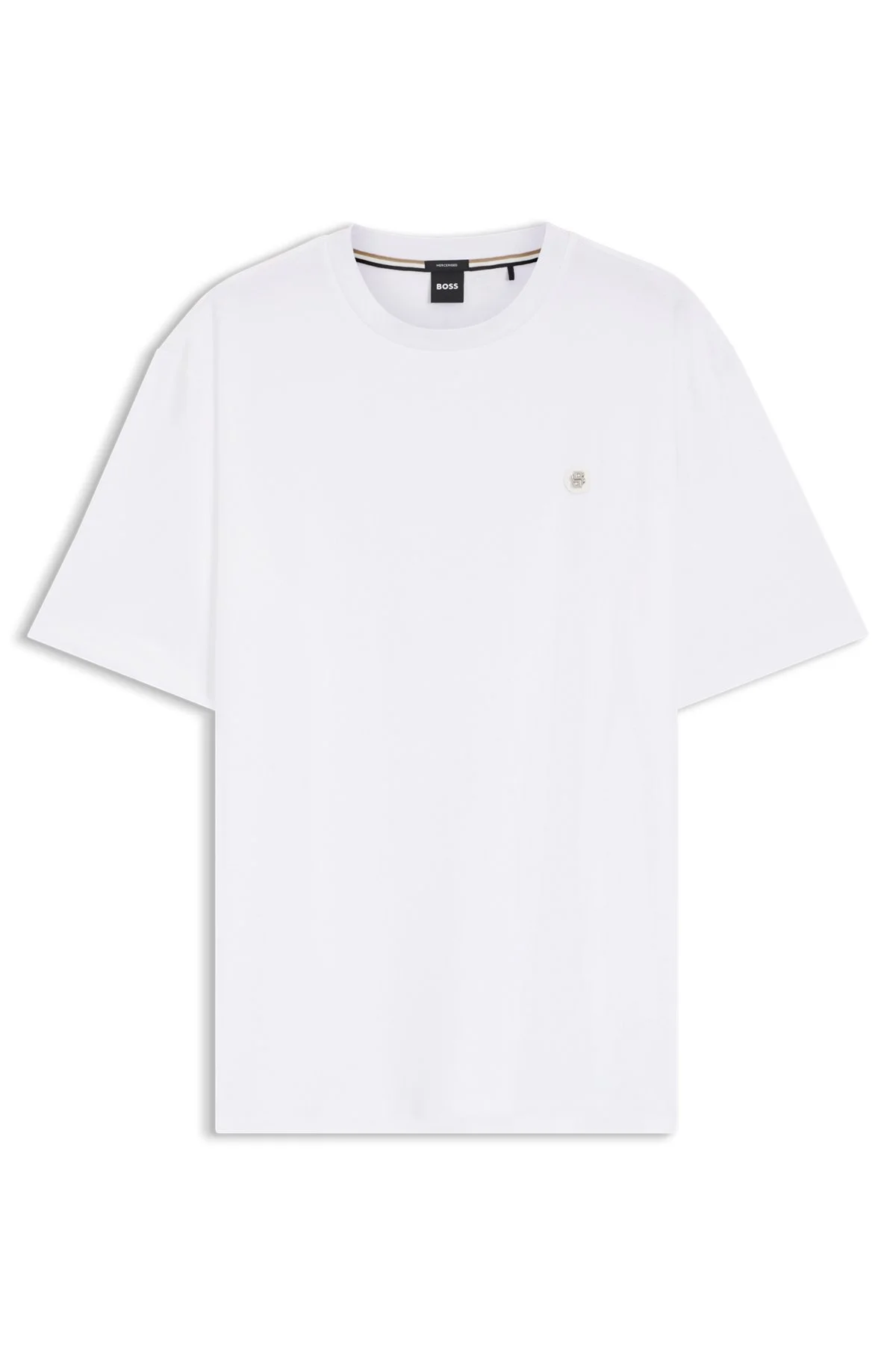 DETAILS This BOSS Menswear T-shirt is crafted in interlock cotton that has been mercerized to increase its softness. Cut to a timeless regular fit. Regular fit Neckline: Crew neck Short sleeves Standard length BT-Taut 01 - 50560393 QUALITY & CARE INSTRUCTIONS Material: 100% Cotton Machine Wash Cold Gentle Do Not Tumble Dry Iron Low Heat Do Not Dry Clean Do Not Bleach