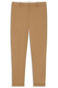 SIZE AND FIT The model wears a size 4 and is 5'10" tall with a, 30" chest, 23" waist and 35" hips. DETAILS Tachinoa - 50490057 Cropped regular-rise trousers cut to a straight fit with a tapered leg in stretch twill by BOSS Womenswear. Regular fit Regular rise Button closure Tapered leg Pleat front Pockets bottom front: Side pockets Pockets bottom back: Welt pocket Fit foot width: 33,0 cm (13.0 inches) QUALITY & CARE INSTRUCTIONS Do Not Tumble Dry Do Not Bleach Quality: 97% Cotton, 3% Elastane, pocketing: 100% Cotton Machine Wash Cold Gentle Iron Low Heat Reduced Dry Clean