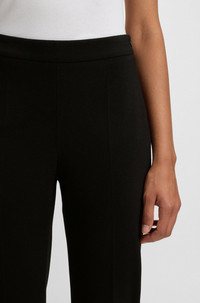 SIZE AND FIT The model wears a size 2 and is 5'9" tall with a, 31" chest, 24" waist and 35" hips. DETAILS Tilunara - 50490056 High-waisted trousers with a cropped, tapered leg by BOSS Womenswear. This straight-fit pair is crafted in stretch material. Model wears size 36. Waist 75cm, hip width 96cm, inseam 70cm (approximately) This product is made with cellulose fibres, derived from natural raw wood material and sourced from responsibly managed forests. We cooperate with external organisations to ensure respectful treatment of virgin and endangered forests. Regular fit High rise Zip closure Tapered leg Crease Fit foot width: 33,0 cm (13.0 inches) QUALITY & CARE INSTRUCTIONS Quality: 71% Viscose, 24% Polyamid, 5% Elastane Do Not Tumble Dry Do Not Bleach Do Not Wash Iron Low Heat Reduced Dry Clean