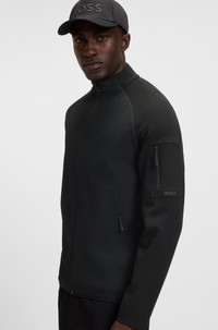 DETAILS FZ Urban Tech - 50543906 Zip this regular-fit BOSS Menswear sweatshirt over everyday looks for better visibility. Decorative reflective accents. Stretch cotton. Embossed pocket detail. Regular fit Neckline: Stand collar Fastening top: Zip closure Pockets top: Zip pockets Long sleeves Standard length QUALITY & CARE INSTRUCTIONS Quality: 39% Modal, 36% Cotton, 18% Polyester, 7% Elastane, Front panel: 85% Polyamid, 15% Elastane Cold, gentle machine wash; reduced spin speed. Do Not Bleach Do Not Tumble Dry Iron Low Heat Do Not Dry Clean