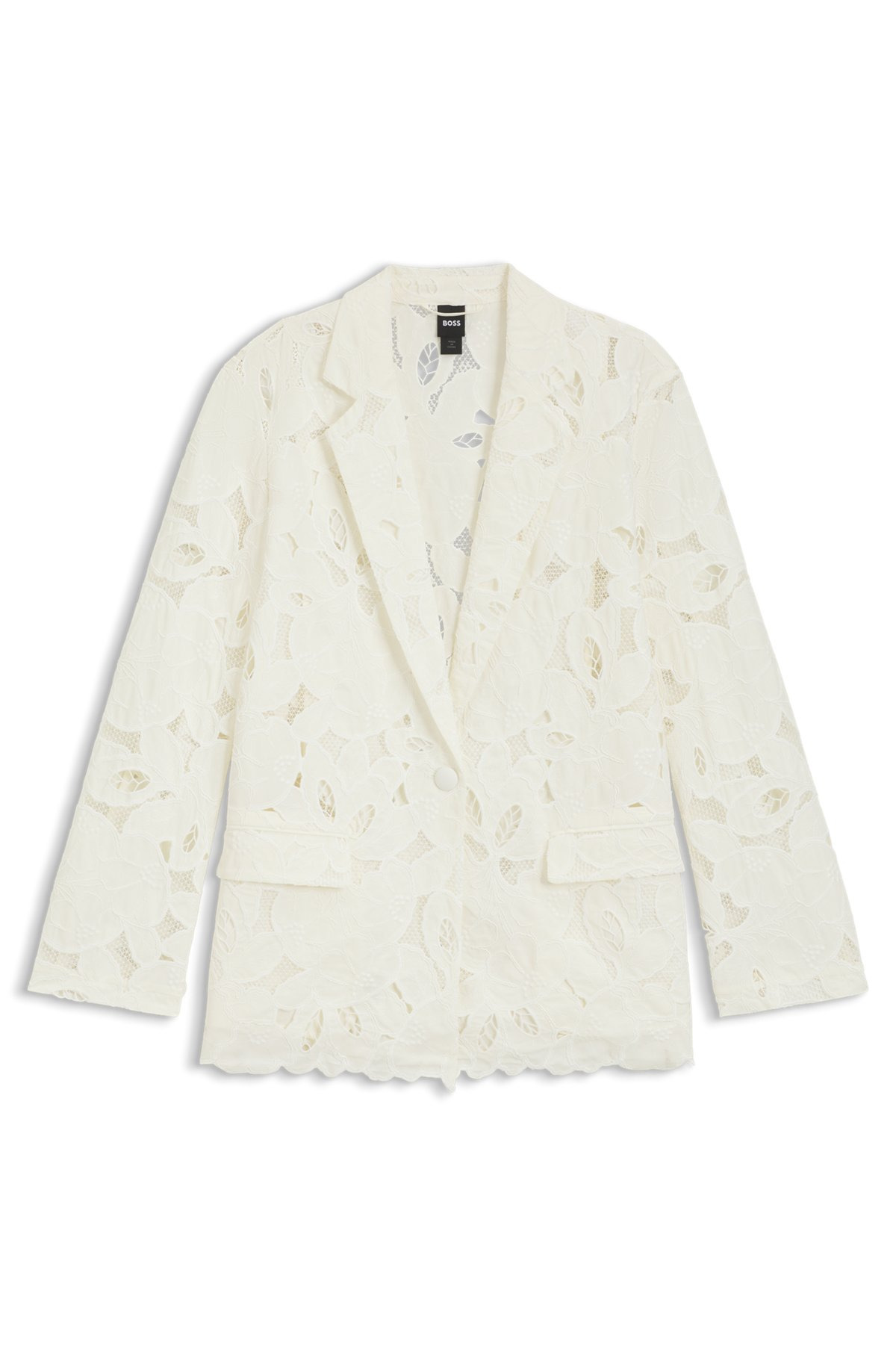 DETAILS Jonara - 50548573 With elegant embroidery, this BOSS Womenswear blazer is crafted in an extra-soft bamboo blend. Modern laid-back fit with a single-button closure. Relaxed fit Notched lapels Fastening top: Button closure Number of buttons: 1 Pockets top: Flap pockets Fit back length: 70 cm (28 inches) QUALITY & CARE INSTRUCTIONS Dry Clean Only Machine Wash Cold Gentle Iron Low Heat Do Not Tumble Dry Quality: 70% Polyester, 29% Viscose (Bamboo - Cellulose), 1% Polyamid, Components: 54% Viscose (Bamboo - Cellulose), 46% Polyester Do Not Bleach