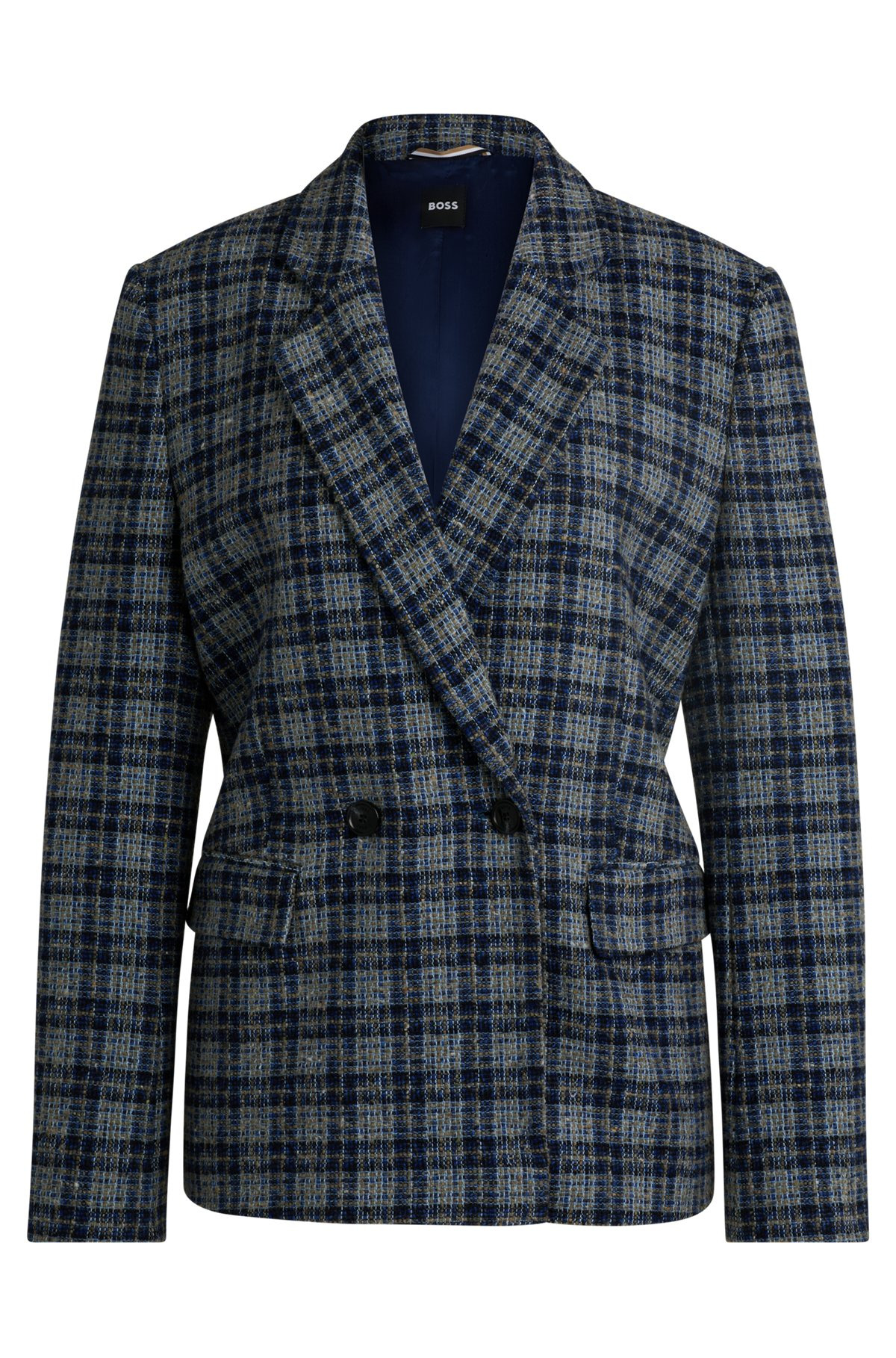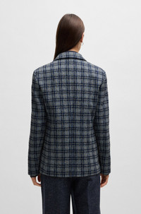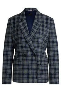 SIZE AND FIT The model wears a size 4 and is 5'9" tall with a, 31" chest, 24" waist and 35" hips. DETAILS Janka-DB - 50528560 A refined jacket by BOSS. Cut to a relaxed fit, this piece is crafted in checked tweed containing cotton and wool. Relaxed fit Fit back length: 68 cm (27 inches) QUALITY & CARE INSTRUCTIONS Iron Low Heat Do Not Wash Quality: 46% Cotton, 21% Polyacrylic, 20% Polyester, 8% Wool, 5% Other fibres, Lining: 100% Viscose Reduced Dry Clean Do Not Bleach Do Not Tumble Dry