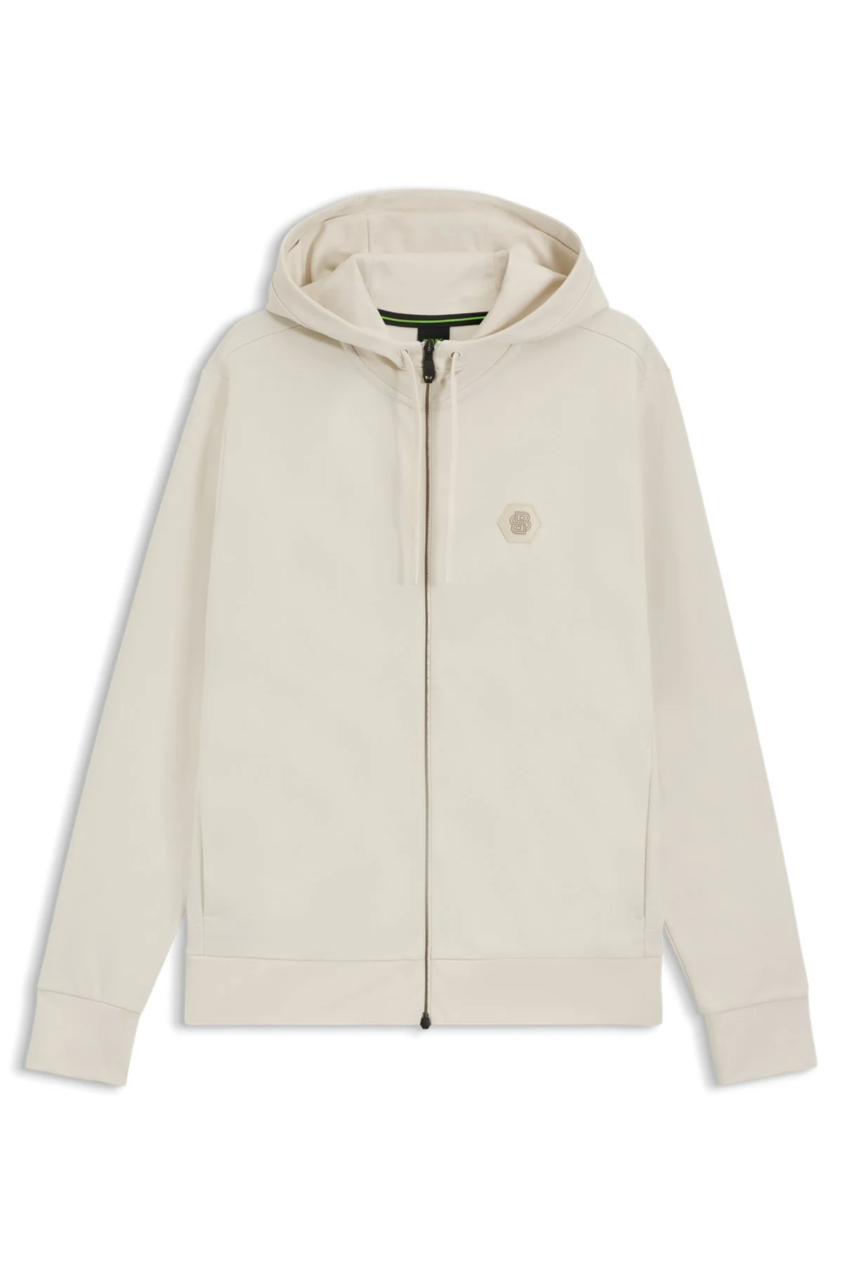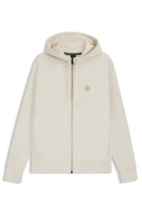 SIZE AND FIT The model wears a size M and is 6'0" tall with a, 38" chest, 29" waist and 38" hips. DETAILS With contrast details and a Double B monogram, this relaxed-fit BOSS Menswear hoodie is a fresh way to layer. Crafted in cotton-rich fabric. Relaxed fit Neckline: Hooded Fastening top: Zip closure Pockets top: Side-entry pockets Long sleeves Self fabric cuffs Standard length Saggy Future - 50545581 QUALITY & CARE INSTRUCTIONS Do Not Tumble Dry Iron Low Heat Do Not Dry Clean Machine Wash Cold Gentle Do Not Bleach Quality: 77% Cotton, 23% Polyester
