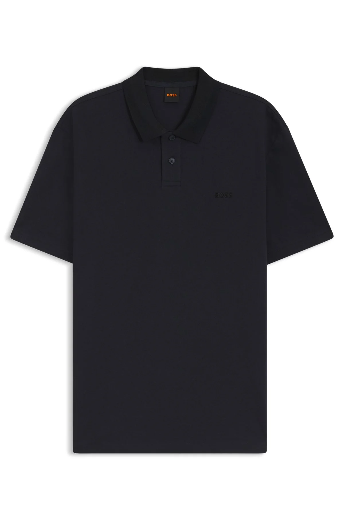 DETAILS Upgrade your casuals with the patterned collar and logo detail of this relaxed-fit BOSS Menswear polo shirt. Soft cotton with breathable pique structure. Relaxed fit Neckline: Flat-knit collar Number of buttons: 2 Short sleeves Pe_Radar - 50556061 QUALITY & CARE INSTRUCTIONS Do Not Tumble Dry Iron Low Heat Do Not Dry Clean Machine Wash Cold Gentle Do Not Bleach Quality: 100% Cotton