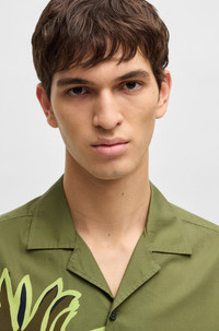 SIZE AND FIT The model wears a size M and is 6'2" tall with a, 37" chest, 30" waist and 37" hips. DETAILS C-LARS-252 - 50540851 In an easy casual fit, this BOSS Menswear shirt is printed with a statement floral motif for summery style. Made in soft Italian cotton poplin. Relaxed fit Camp collar Round cuffs QUALITY & CARE INSTRUCTIONS Do Not Tumble Dry Quality: 100% Cotton Machine Wash Cold Do Not Bleach Dry Clean Only Iron Medium Heat