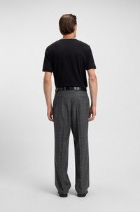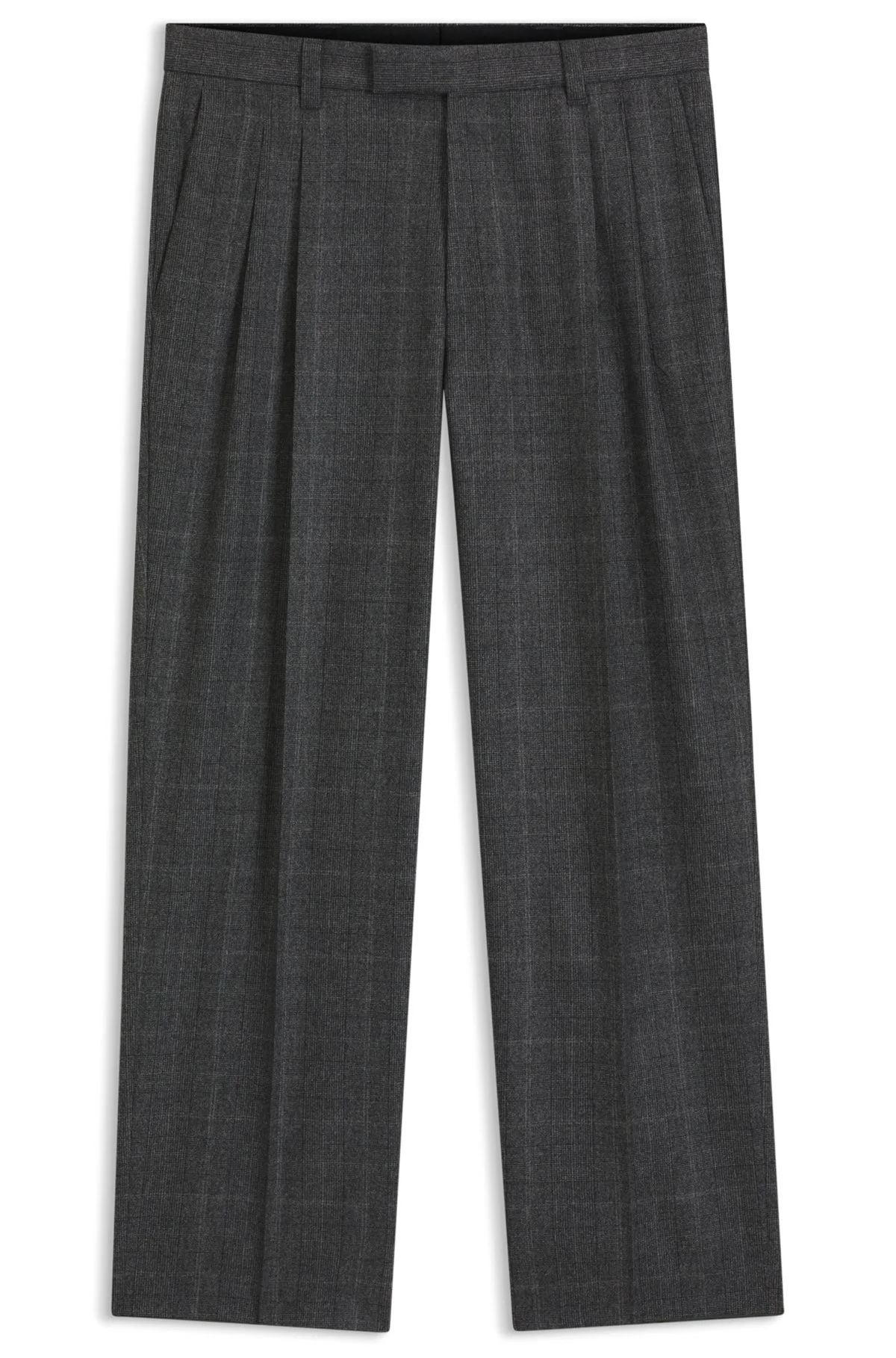 DETAILS Updating classic checked trousers with a relaxed fit and double pleats, this BOSS Menswear pair is a modern choice. Soft wool blended with comfortable stretch. Tapered fit Hook and zip closure Pockets bottom front: Side slash pockets Pockets bottom back: Welt pocket Partially lined C-Pat-DPL-BB-254 - 50557357 QUALITY & CARE INSTRUCTIONS Material: 99% Wool, 1% Elastane, pocketing: 65% Polyester, 35% Cotton Reduced Dry Clean Do Not Wash Do Not Tumble Dry Iron Low Heat Do Not Bleach
