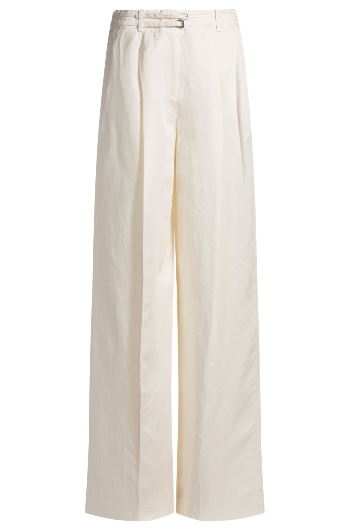 SIZE AND FIT The model wears a size 4 and is 5'10" tall with a, 31" chest, 24" waist and 35" hips. DETAILS Taualy-W - 50538045 Topped with a double belt, these wide-leg BOSS Womenswear trousers are an easy summer foundation. Blended with linen for an elegant drape. Relaxed fit. Relaxed fit Regular rise Hook and zip closure Belted closure Wide leg Pockets bottom front: Side pockets Pockets bottom back: Welt pocket Fit foot width: 66,0 cm (26.0 inches) QUALITY & CARE INSTRUCTIONS Machine Wash Cold Gentle Do Not Tumble Dry Iron Low Heat Do Not Bleach Reduced Dry Clean Quality: 60% Lyocell, 40% Linen, pocketing: 100% Cotton