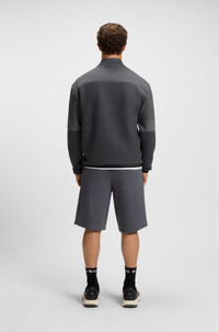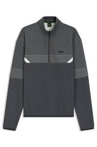 DETAILS QZ Sweat TL - 50543144 Featuring a sporty quarter zip, this relaxed BOSS Menswear sweatshirt is a great layering option. Blended with cotton. Innovative quilted jacquard. V-shape cutlines. Relaxed fit Neckline: Zip neck Fastening top: Zip closure Long sleeves Standard length QUALITY & CARE INSTRUCTIONS Quality: 62% Polyester, 38% Cotton Do Not Tumble Dry Do Not Bleach Iron Low Heat Machine Wash Cold Gentle Do Not Dry Clean