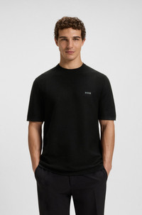 DETAILS K_Urban Commuter T - 50541939 Bodymapped at the rear, this BOSS Menswear sweater is cut to a casual regular fit. Knitted with a ribbed structure in stretch yarn. Regular fit Neckline: Crew neck Short sleeves Standard length QUALITY & CARE INSTRUCTIONS Iron Medium Heat Machine Wash Cold Gentle Do Not Dry Clean Do Not Tumble Dry Quality: 72% Viscose, 28% Polyester Do Not Bleach
