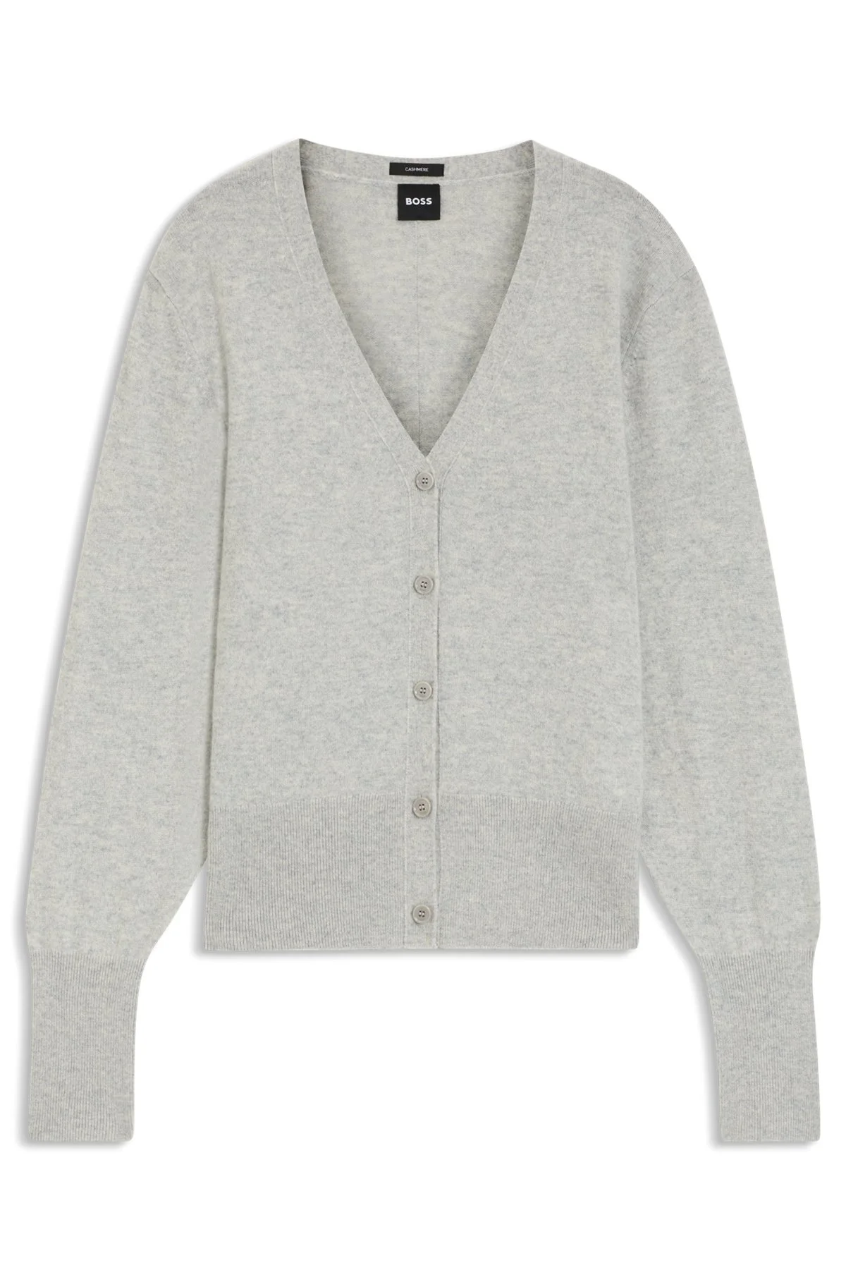 SIZE AND FIT The model wears a size S and is 5'10" tall with a, 33" chest, 23" waist and 34" hips. DETAILS Layer with luxury in the cashmere knit of this BOSS Womenswear cardigan. Cut to a laid-back fit with cashmere-blend ribbed trims. Button closure Relaxed fit Neckline: V-neck Long sleeves Fit back length: 60 cm (24 inches) Fuvrona - 50548814 QUALITY & CARE INSTRUCTIONS Do Not Tumble Dry Do Not Bleach Material: 100% Cashmere, Ribbing: 87% Cashmere, 12% Polyamid, 1% Elastane Iron Low Heat Reduced Dry Clean Hand Wash Only
