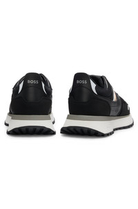 DETAILS Jonah_Runn_mx_N - 50498280 Athletically styled trainers with signature-stripe webbing by BOSS, crafted in a mix of textures including mesh and synthetic coated fabric. Laces Fully lined Packaging: Box QUALITY & CARE INSTRUCTIONS Upper material: 55% Polyurethane, 45% Polyester, Lining: 85% Polyester, 54% Viscose (Bamboo - Cellulose), 46% Polyester, 15% Polyurethane, Sole: 70% Ethylene vinyl acetate, 30% Rubber, Facing: 100% Polyester, 64% Regenerated leather, 36% Polyurethane, Innersole: 54% Viscose (Bamboo - Cellulose), 46% Polyester