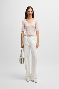 SCOOP-NECK T-SHIRT IN RIBBED STRETCH FABRIC