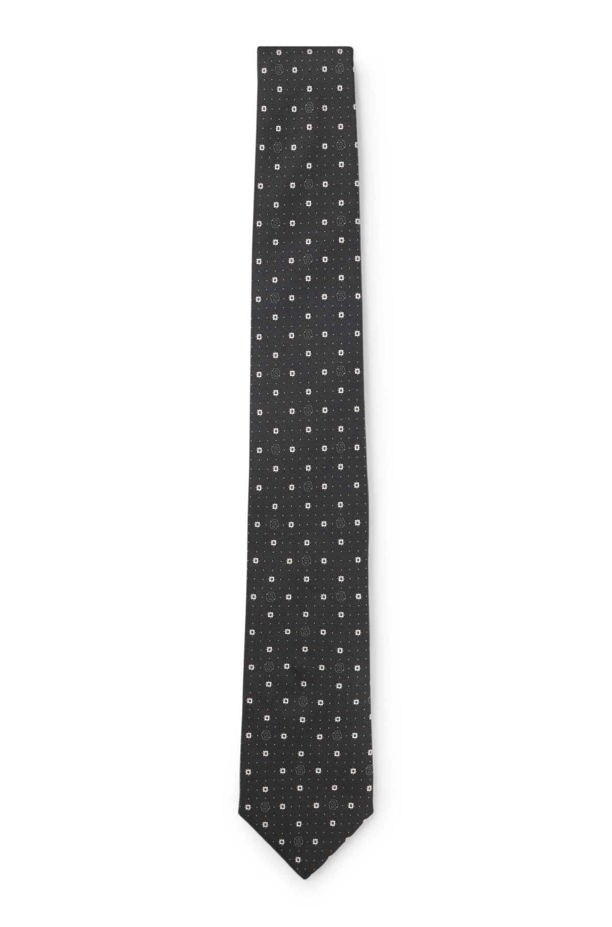SIZE AND FIT The model wears a size pce. and is 6'1" tall with a, 32" chest, 28" waist and 34" hips. DETAILS H-TIE CM 7.5 253 - 50544757 A distinctive formal touch, this BOSS Menswear tie is woven with small Double B monograms. Elegant silk blend. Length: 150,0 cm (59.1 inches) Width: 7,5 cm (3.0 inches) QUALITY & CARE INSTRUCTIONS Do Not Wash Reduced Dry Clean Do Not Tumble Dry Do Not Bleach Quality: 55% Silk, 45% Polyester Iron Low Heat