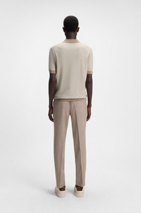 SIZE AND FIT The model wears a size M and is 6'1" tall with a, 33" chest, 31" waist and 33" hips. DETAILS A short-sleeved sweater in a micro-structured silk-cotton blend by BOSS Menswear. This regular-fit piece features an open Johnny collar. Regular fit Neckline: Polo collar Short sleeves Standard length L-Distratto - 50519587 QUALITY & CARE INSTRUCTIONS Do Not Tumble Dry Do Not Bleach Reduced Dry Clean Iron Medium Heat Cold, gentle machine wash; reduced spin speed. Quality: 55% Silk, 45% Cotton, Ribbing: 100% Silk