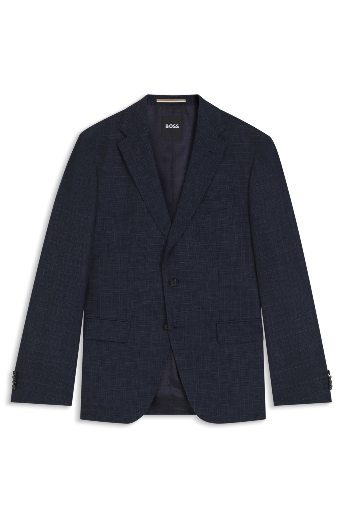 DETAILS H-Hutson-251 - 50551568 With its check pattern and slim cut, this heritage-style BOSS Menswear blazer will update any formal look. Soft virgin wool. Fully lined. Constructed shoulders. Fully lined QUALITY & CARE INSTRUCTIONS Quality: 100% Virgin wool, Lining: 100% Viscose, Sleeve lining: 100% Viscose Do Not Tumble Dry Reduced Dry Clean Iron Medium Heat Do Not Wash Do Not Bleach