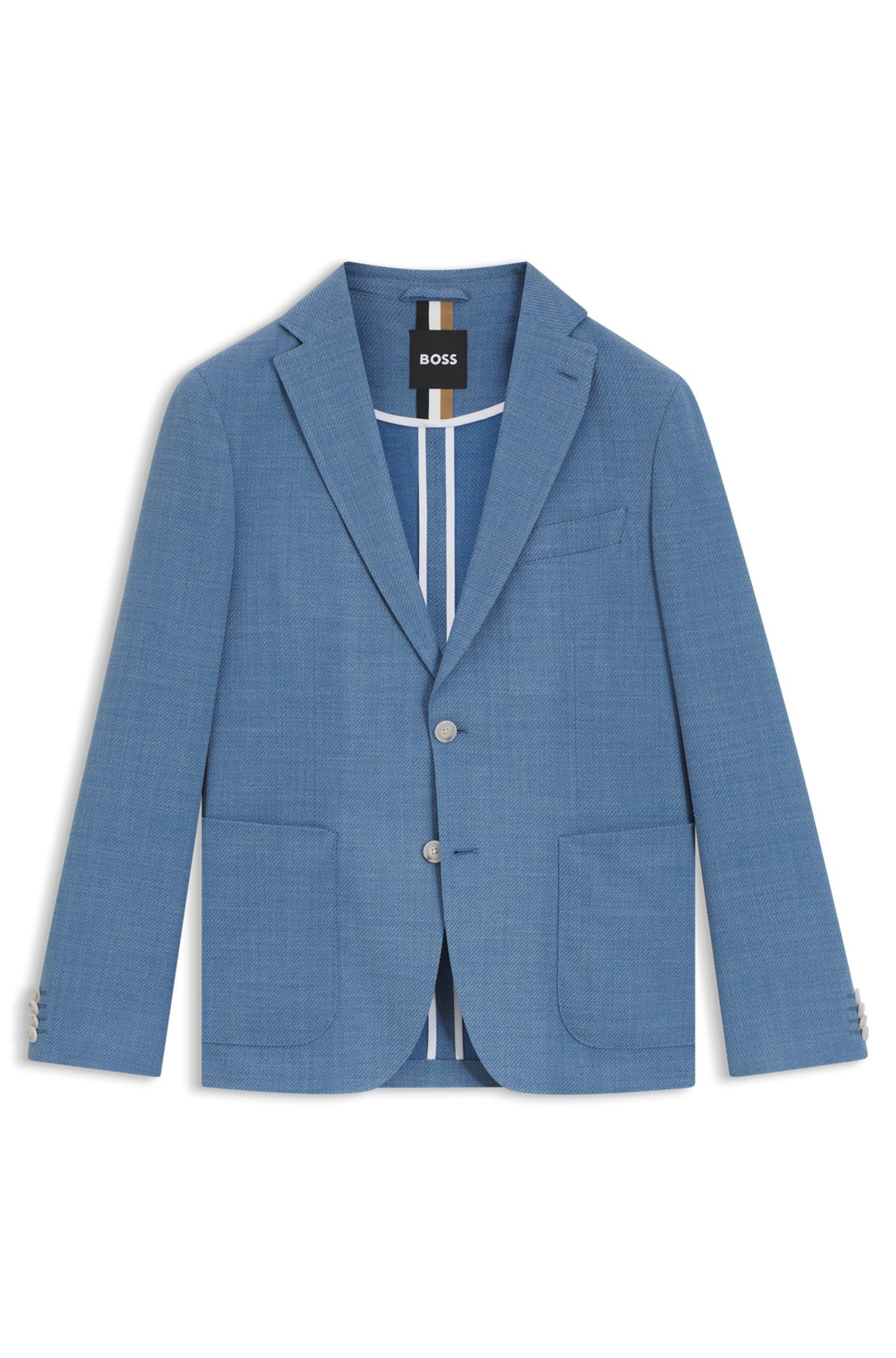 SIZE AND FIT The model wears a size 38R and is 6'1" tall with a, 36" chest, 29" waist and 36" hips. DETAILS C-Hanry-252 - 50545830 With a soft shoulder construction, this slim-fit BOSS Menswear blazer is a great all-rounder. Blended with wool, cotton and stretch. Subtle pattern. Unlined QUALITY & CARE INSTRUCTIONS Iron Low Heat Do Not Tumble Dry Do Not Bleach Do Not Wash Quality: 26% Viscose, 46% Virgin wool, 26% Cotton, 2% Elastane, Lining: 65% Polyester, 35% Cotton, Sleeve lining: 100% Viscose, pocketing: 100% Cotton Reduced Dry Clean