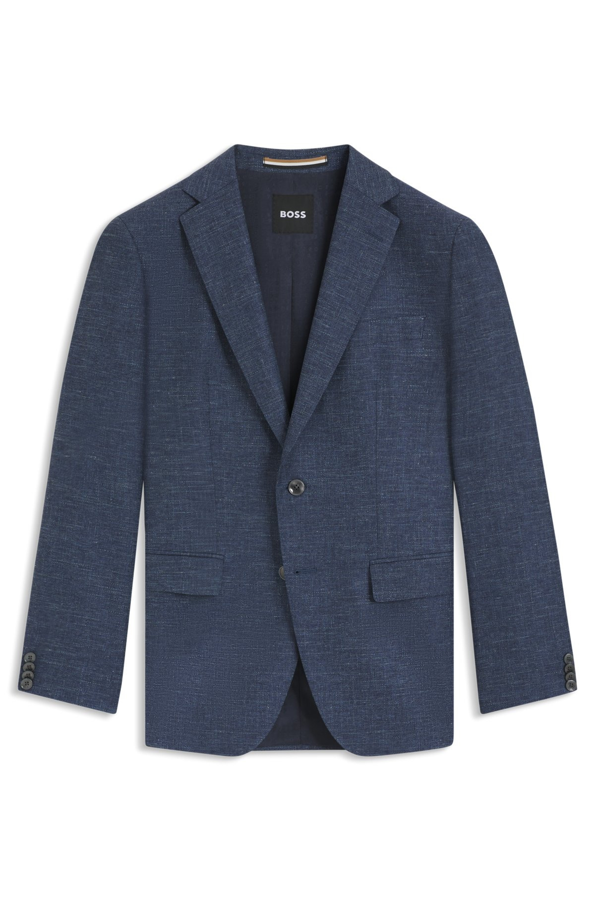 DETAILS H-Hutson-251 - 50545884 With its subtle pattern and clean fit, this BOSS Menswear blazer is so easy to style. Stretch fabric with wool, cotton and linen. Fully lined QUALITY & CARE INSTRUCTIONS Do Not Wash Iron Low Heat Quality: 35% Virgin wool, 30% Cotton, 26% Viscose, 7% Linen, 2% Elastane, Lining: 65% Viscose, 35% Polyester, Sleeve lining: 100% Viscose Do Not Tumble Dry Do Not Bleach Reduced Dry Clean