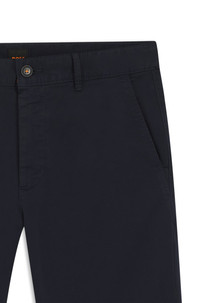 SIZE AND FIT The model wears a size EU:32 and is 6'1" tall with a, 33" chest, 25" waist and 35" hips. DETAILS Chino_slim - 50510933 Easy to style chinos by BOSS Menswear. Cut to a slim fit, this pair is crafted in soft satin with stretch for comfort. Slim fit Regular rise Button and zip closure Slim leg Pockets bottom front: French pocket Pockets bottom back: Welt pocket Unlined QUALITY & CARE INSTRUCTIONS Iron Low Heat Machine Wash Cold Gentle Reduced Dry Clean Do Not Bleach Do Not Tumble Dry Quality: 97% Cotton, 3% Elastane