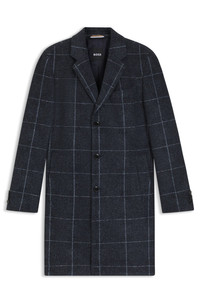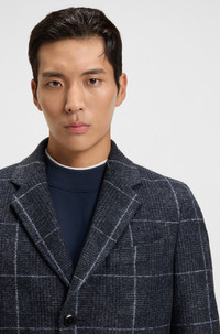 SIZE AND FIT The model wears a size 38R and is 6'1" tall with a, 36" chest, 29" waist and 36" hips. DETAILS H-Hyde-J-254 - 50551092 Blended with wool and offering two-way stretch, this slim-cut BOSS Menswear coat is a classic way to layer. Patterned with a versatile check. Slim fit Notched lapels Number of buttons: 3 Welt chest pockets Pockets top: Side-entry pockets Button cuffs Back vent Fully lined QUALITY & CARE INSTRUCTIONS Do Not Tumble Dry Reduced Dry Clean Quality: 45% Polyester, 40% Polyacrylic, 15% Virgin wool, Sleeve lining: 100% Viscose, Body Lining: 100% Viscose Iron Low Heat Do Not Wash Do Not Bleach