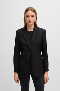 SIZE AND FIT The model wears a size 4 and is 5'9" tall with a, 30" chest, 26" waist and 34" hips. DETAILS Jizena - 50518437 A long-length jacket cut to a defined fit by BOSS Menswear. Crafted in performance-stretch material, this piece features a clean concealed closure. Slim fit Notched lapels Fastening top: Concealed closure Number of buttons: 3 Pockets top: Single welt pocket Inside jet pocket with button Slit cuffs Fully lined Fit back length: 70 cm (28 inches) QUALITY & CARE INSTRUCTIONS Iron Low Heat Quality: 88% Polyamid, 12% Elastane, Lining: 64% Viscose, 36% Polyester Reduced Dry Clean Do Not Bleach Cold, gentle machine wash; reduced spin speed. Do Not Tumble Dry