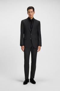 SIZE AND FIT The model wears a size EU:94 and is 6'2" tall with a, 35" chest, 29" waist and 35" hips. DETAILS L-Harvers-241-LC - 50509899 A timeless jacket by BOSS Menswear. Tailored to a defined silhouette, this fully-lined style is crafted in stretch fabric for ease of movement. Slim fit Fully lined QUALITY & CARE INSTRUCTIONS Do Not Wash Quality: 98% Virgin wool, 2% Elastane, pocketing: 100% Cotton, Body Lining: 100% Cupro Iron Medium Heat Do Not Bleach Reduced Dry Clean Do Not Tumble Dry