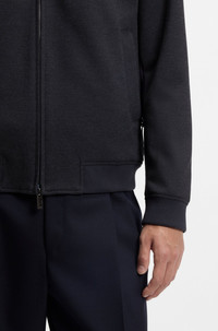 SIZE AND FIT The model wears a size 38R and is 6'1" tall with a, 36" chest, 29" waist and 36" hips. DETAILS Update your everyday collection with the slim cut and double-ended zip of this BOSS Menswear jacket. Travel-friendly stretch fabric with wrinkle recovery. Slim fit Stand collar Fastening top: Zip closure Welt chest pockets Pockets top: Side-entry pockets Elasticized cuffs Fully lined P-Hanry-JBMBWGPK261F - 50554155 QUALITY & CARE INSTRUCTIONS Reduced Dry Clean Material: 45% Polyamid, 33% Polyester, 15% Viscose, 7% Elastane, Sleeve lining: 55% Polyester, 45% Viscose, Knitwear: 86% Polyester, 12% Polyamid, 2% Elastane, pocketing: 100% Polyester Cold, gentle machine wash; reduced spin speed. Do Not Bleach Do Not Tumble Dry Do Not Iron