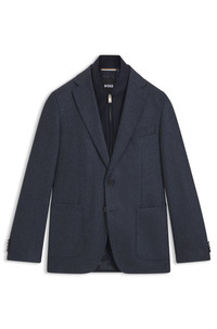 SIZE AND FIT The model wears a size 38R and is 6'1" tall with a, 36" chest, 29" waist and 36" hips. DETAILS Featuring an integrated bib, this BOSS Menswear jacket is a versatile investment. Slim fit in a wool-rich blend with a light pattern. Slim fit Fully lined H-Hutson-Bib-254 - 50551589 QUALITY & CARE INSTRUCTIONS Iron Low Heat Do Not Bleach Do Not Wash Material: 70% Wool, 30% Polyamid, Lining: 100% Viscose, Waistcoat: 80% Wool, 20% Polyamid, Sleeve lining: 100% Viscose Do Not Tumble Dry Reduced Dry Clean