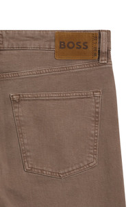 SIZE AND FIT The model wears a size 32/32 and is 6'1" tall with a, 36" chest, 29" waist and 36" hips. DETAILS Cut to a clean slim fit, these BOSS Menswear jeans deliver a modern profile for casual looks. Finest stretch denim with an extra-soft feel. Slim fit Regular rise Button and zip closure Pockets bottom front: Side pockets Slim leg Pockets bottom back: Patch pocket Standard length Fit foot width: 36,0 cm (14.2 inches) L-KAROO - 50548033 QUALITY & CARE INSTRUCTIONS Do Not Dry Clean Machine Wash Cold Gentle Iron Medium Heat Do Not Bleach Material: 92% Cotton, 6% Cashgora, 2% Elastane Do Not Tumble Dry