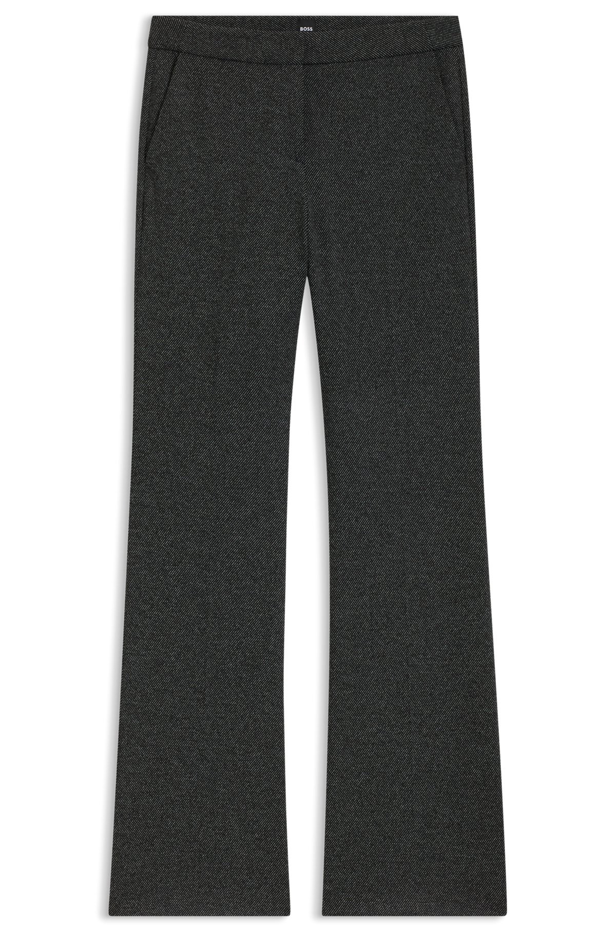 SIZE AND FIT The model wears a size 4 and is 5'9" tall with a, 31" chest, 24" waist and 35" hips. DETAILS Talia3 - 50543725 In stretch twill for comfort in movement, these extra-long BOSS Womenswear trousers are a versatile business foundation. Slim fit with flared leg. Slim fit Regular rise Hook and zip closure Flared leg Crease Pockets bottom front: French pocket Fit foot width: 55,0 cm (21.7 inches) QUALITY & CARE INSTRUCTIONS Quality: 55% Viscose, 42% Polyamid (21% recycled), 3% Elastane, pocketing: 64% Viscose, 36% Polyester Do Not Iron Do Not Tumble Dry Cold, gentle machine wash; reduced spin speed. Do Not Bleach Reduced Dry Clean