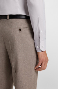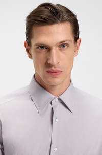 SIZE AND FIT The model wears a size EU:40 and is 6'2" tall with a, 35" chest, 29" waist and 35" hips. DETAILS With a luxurious touch and stretch for comfort on the go, this BOSS Menswear shirt is cut in an Italian-made cotton blend. Slim fit Slim fit Kentkragen Angled cuffs L-HAYS-KENT-C1-243 - 50552907 QUALITY & CARE INSTRUCTIONS Dry Clean Only Do Not Tumble Dry Machine Wash Warm Do Not Bleach Iron Medium Heat Quality: 74% Cotton, 23% Polyamid, 3% Elastane