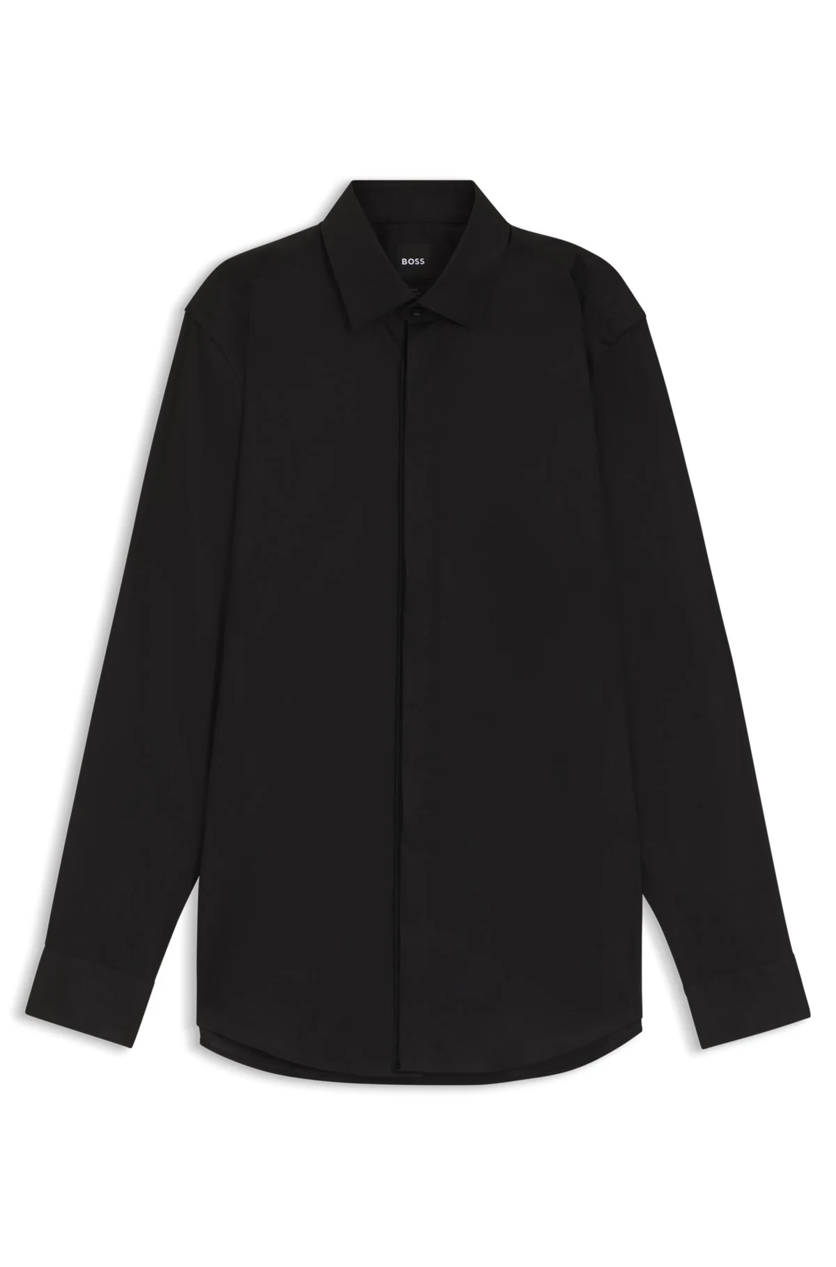 DETAILS With an extra-soft feel and easy-care finish, this slim BOSS Menswear evening shirt is an elevated classic. Crafted in cotton with natural stretch. Please note that the white colorway – made from cotton woven in Austria – has a special finish that holds its brilliance for an extra-white look, wash after wash. Slim fit Kentkragen Round cuffs H-HANK-party6-254 - 50550653 QUALITY & CARE INSTRUCTIONS Do Not Tumble Dry Do Not Bleach Material: 100% Cotton Machine Wash Cold Reduced Dry Clean Iron Low Heat