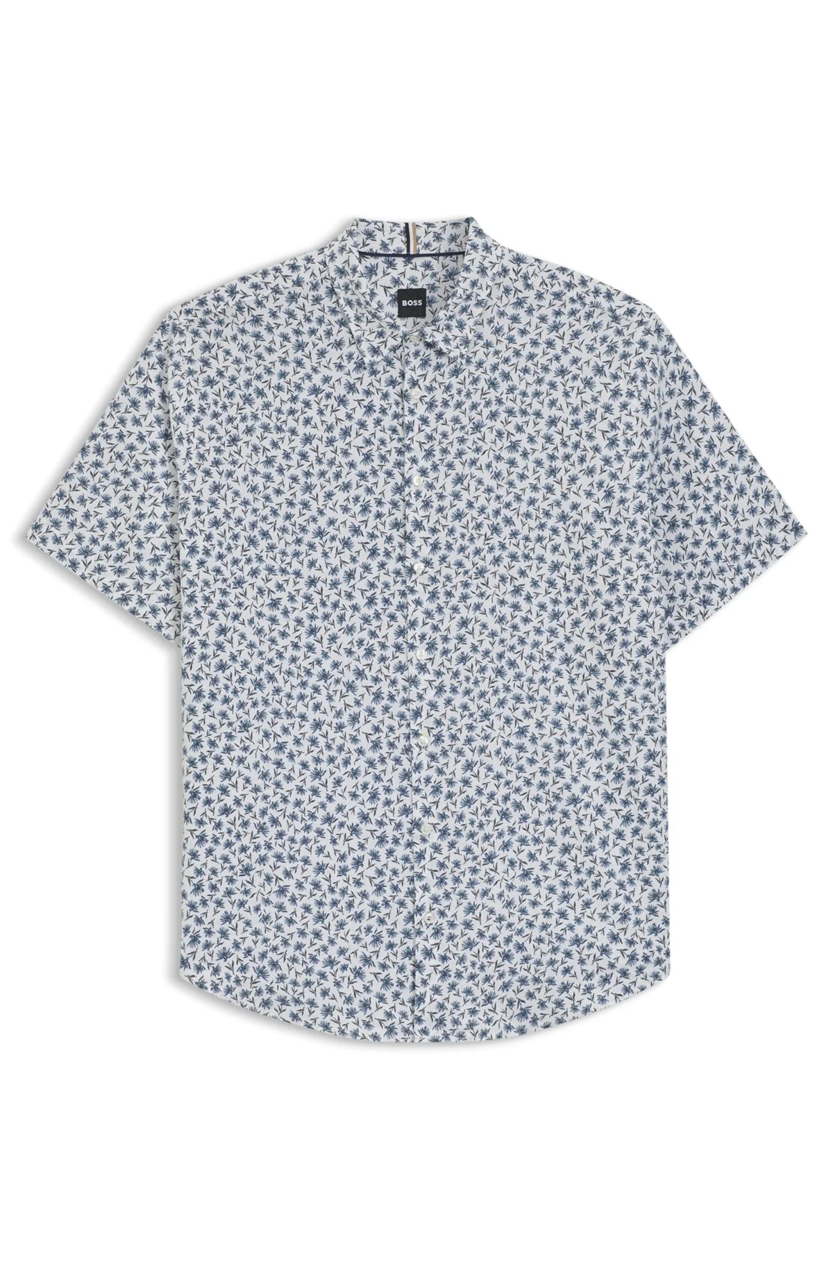 DETAILS C-ROAN-ken-SH-C1-BT - 50549334 A summertime must, this BOSS Menswear shirt has a fresh floral print. Cut to a defined fit in linen blended with comfortable stretch. Slim fit Kent collar No cuffs QUALITY & CARE INSTRUCTIONS Do Not Tumble Dry Iron Low Heat Do Not Bleach Quality: 85% Linen, 15% Elastomultiester Dry Clean Only Machine Wash Cold