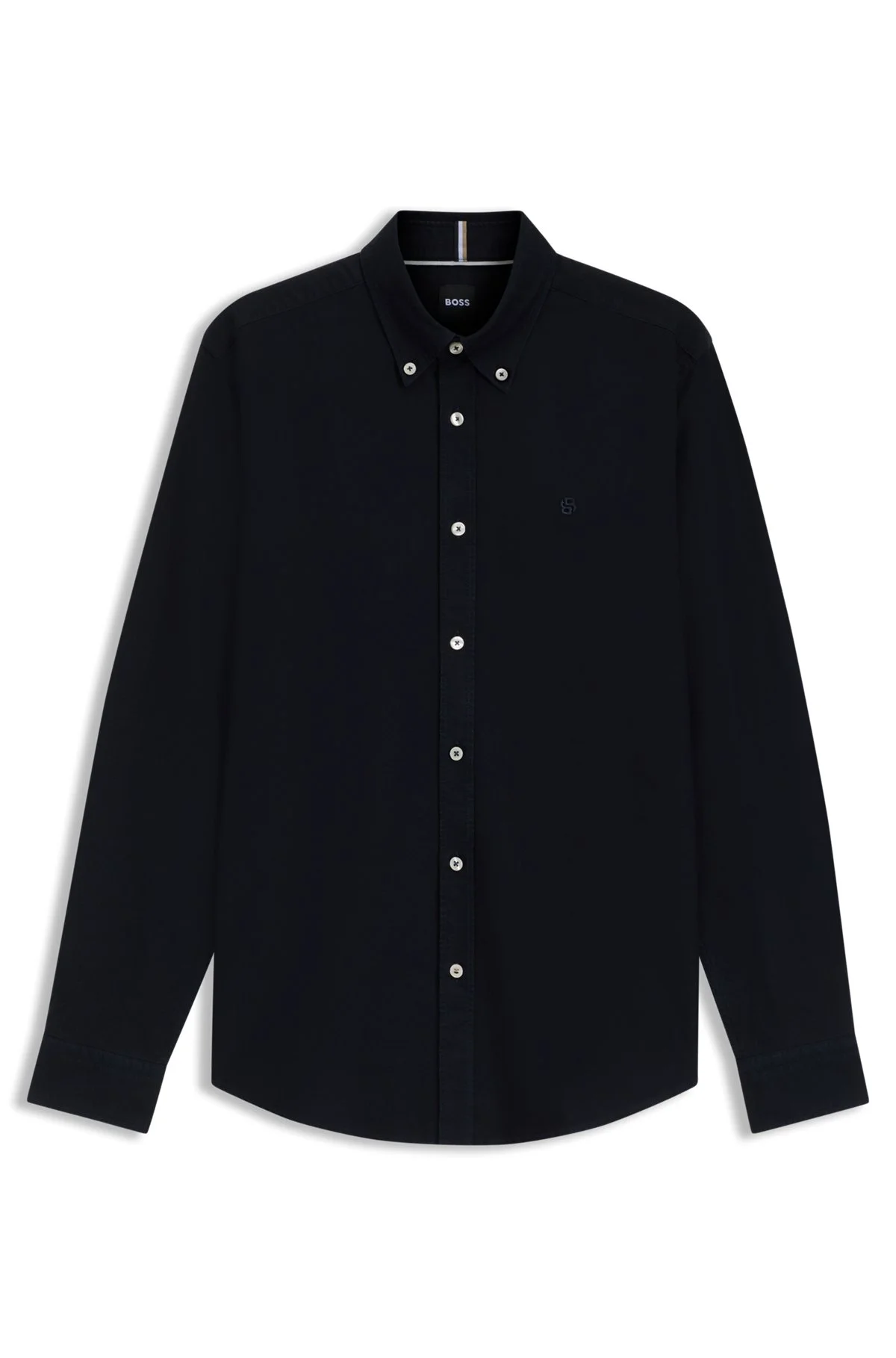 SIZE AND FIT The model wears a size L and is 6'1" tall with a, 36" chest, 29" waist and 37" hips. DETAILS In timeless Oxford cotton, this BOSS Menswear shirt is made to last. Defined fit with button-down collar. Distinctive Double B monogram embroidery. Slim fit Button-down collar Round cuffs H-ROAN-BD-E-C1-253 - 50544917 QUALITY & CARE INSTRUCTIONS Dry Clean Only Do Not Tumble Dry Machine Wash Warm Do Not Bleach Iron Medium Heat Quality: 100% Cotton