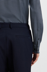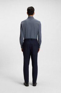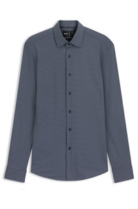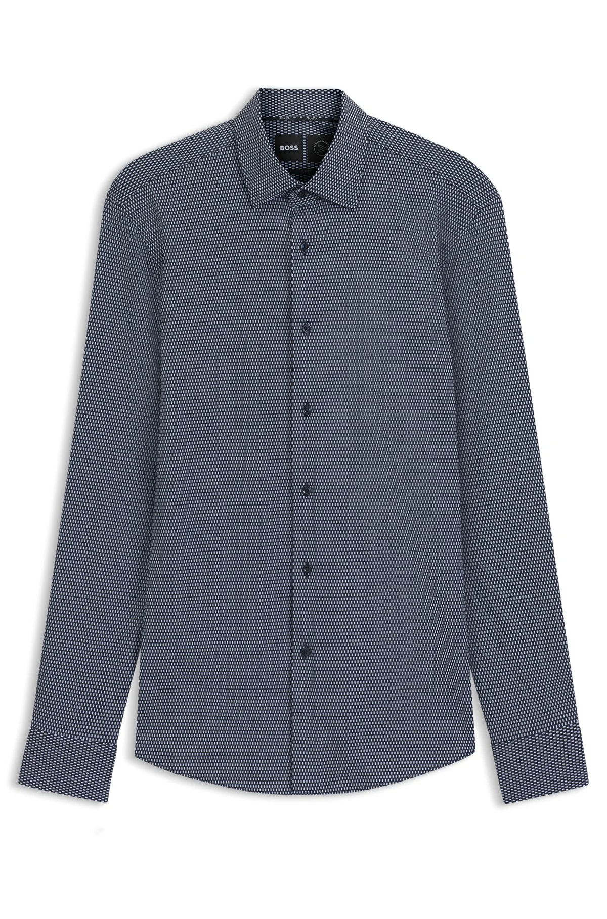 DETAILS P-HANK-kent-C1-222 - 50545310 In breathable Italian-made fabric with generous stretch, this BOSS Menswear shirt is a must on busy days. Slim fit. Contemporary print. Slim fit Kent collar Round cuffs QUALITY & CARE INSTRUCTIONS Do Not Tumble Dry Do Not Bleach Dry Clean Only Quality: 87% Polyamide, 13% Elastane Machine Wash Cold Gentle Iron Low Heat