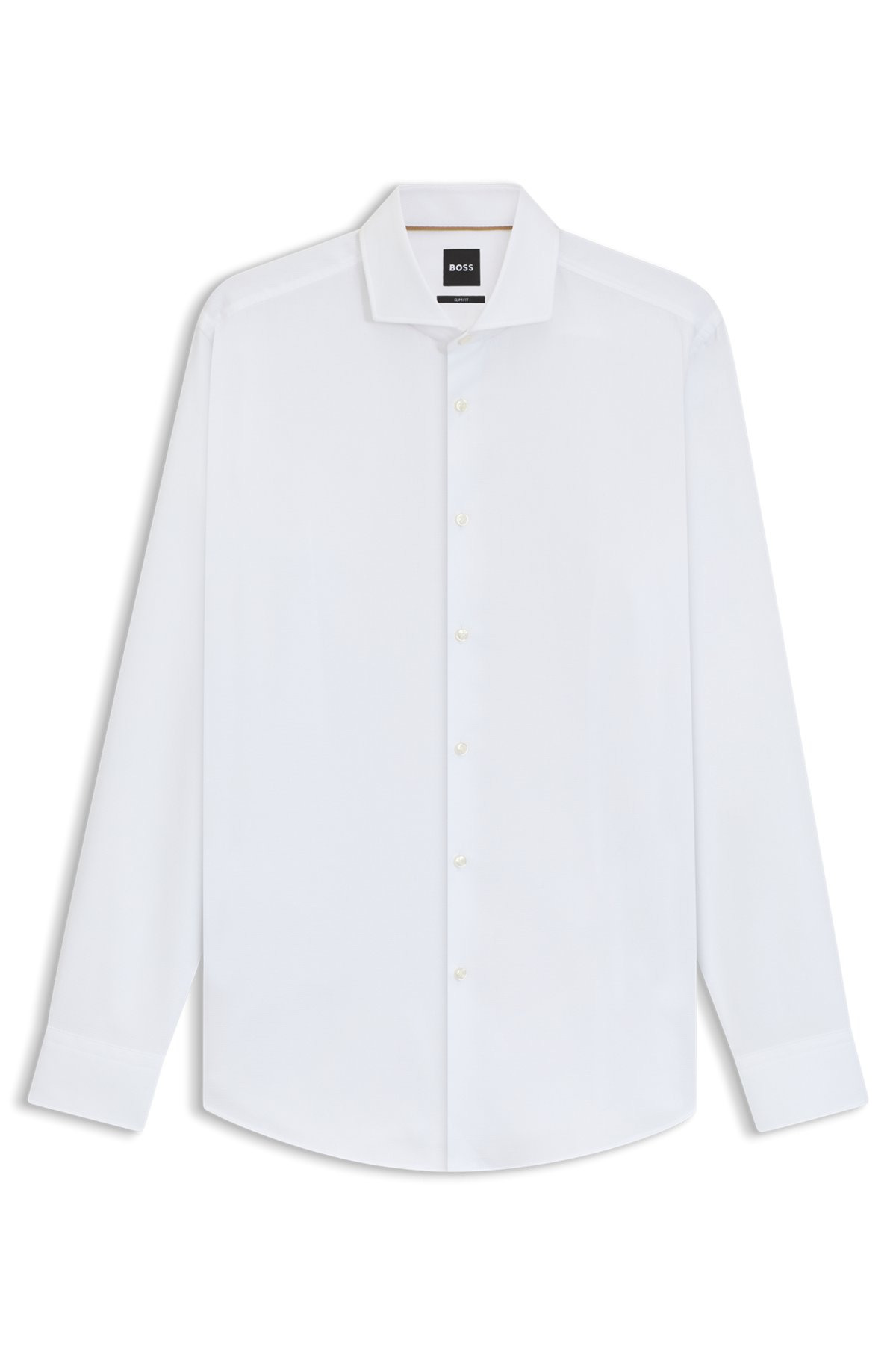 SIZE AND FIT The model wears a size EU:40 and is 6'1" tall with a, 33" chest, 24" waist and 36" hips. DETAILS H-HANK-spread-C1-222 - 50545157 Woven in Italian cotton with a rich structure, this BOSS Menswear shirt is designed for formal comfort. Tailored to a slim fit. Spread collar QUALITY & CARE INSTRUCTIONS Do Not Tumble Dry Quality: 100% Cotton Machine Wash Warm Iron Medium Heat Do Not Bleach Dry Clean Only