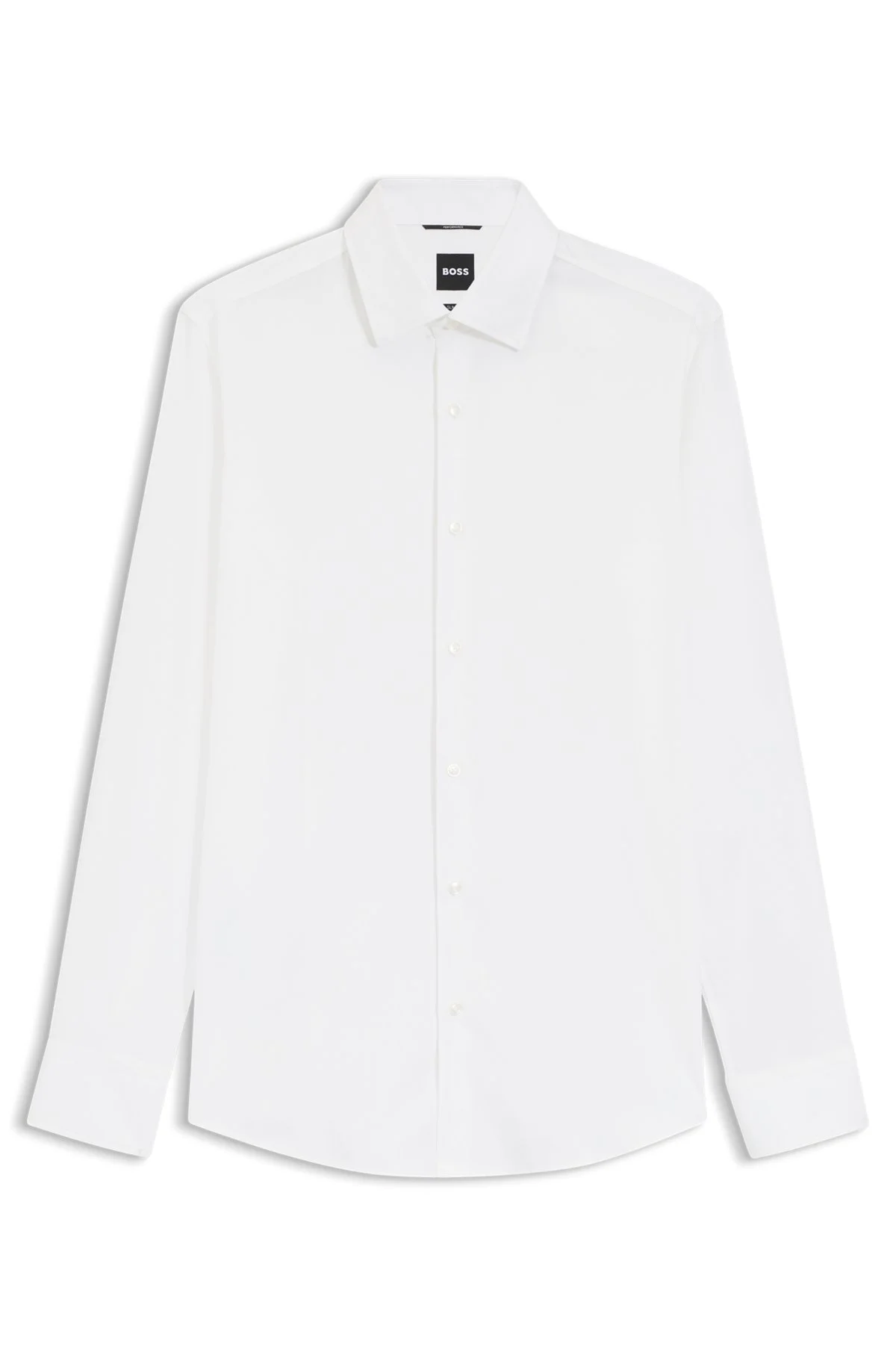 DETAILS Invest in advanced comfort for work and formal events with this BOSS Menswear shirt. Tailored to a defined fit in super-flex twill. Slim fit Kentkragen Round cuffs P-HANK-kent-C1-222 - 50538783 QUALITY & CARE INSTRUCTIONS Do Not Tumble Dry Material: 93% Polyamid, 7% Elastane Machine Wash Warm Do Not Bleach Iron Medium Heat Dry Clean Only