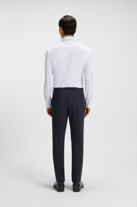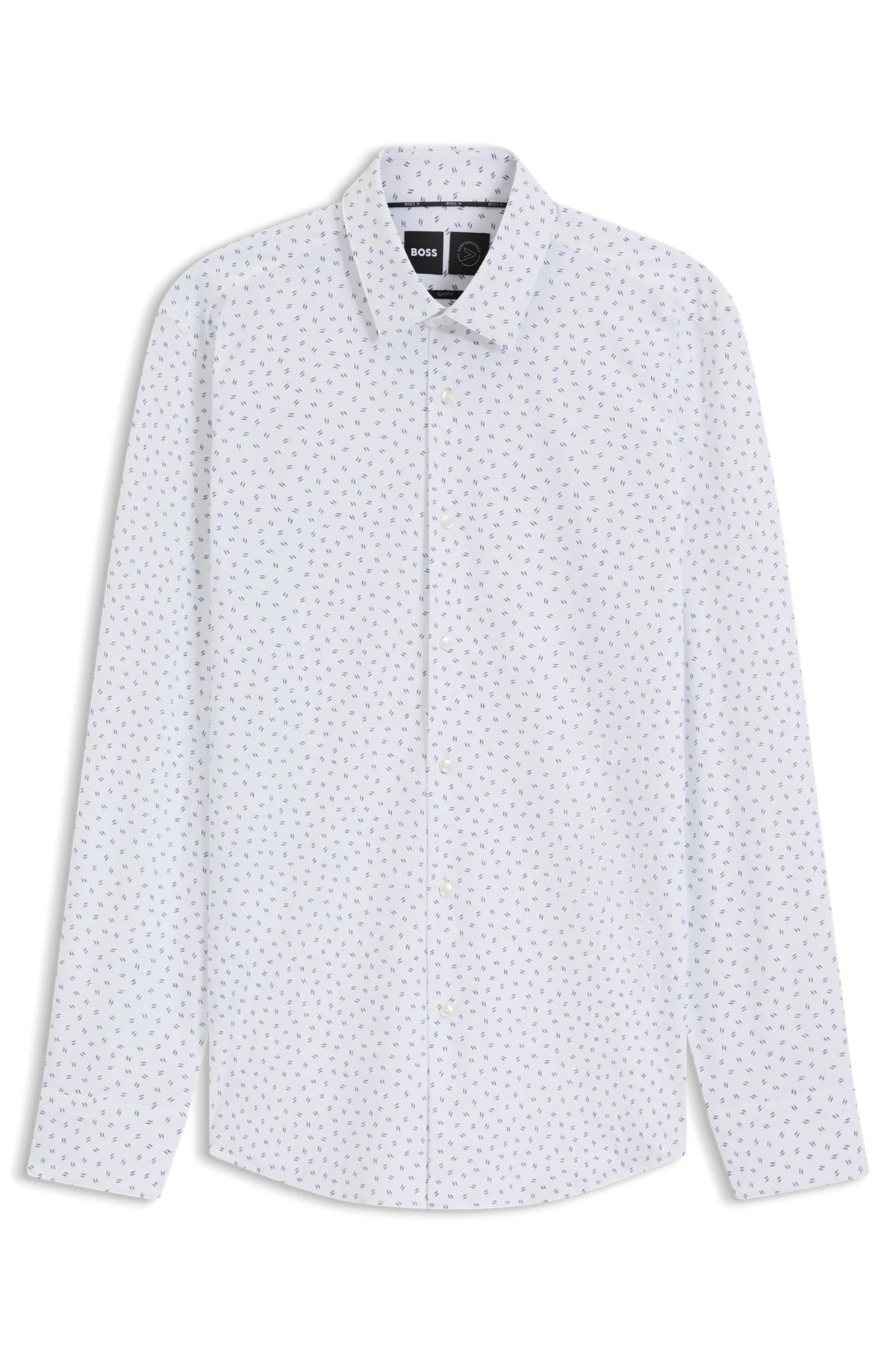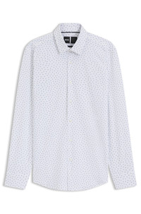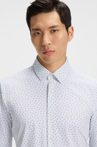 SIZE AND FIT The model wears a size EU:40 and is 6'1" tall with a, 36" chest, 29" waist and 36" hips. DETAILS P-HANK-s-kent-C1-222 - 50545306 In super-flex jersey for comfort and movement, this BOSS Menswear shirt is a business essential. Tailored to a clean fit. Contemporary print. Slim fit Kent collar Round cuffs QUALITY & CARE INSTRUCTIONS Machine Wash Cold Gentle Iron Low Heat Quality: 76% Polyamid, 24% Elastane Do Not Bleach Do Not Tumble Dry Dry Clean Only
