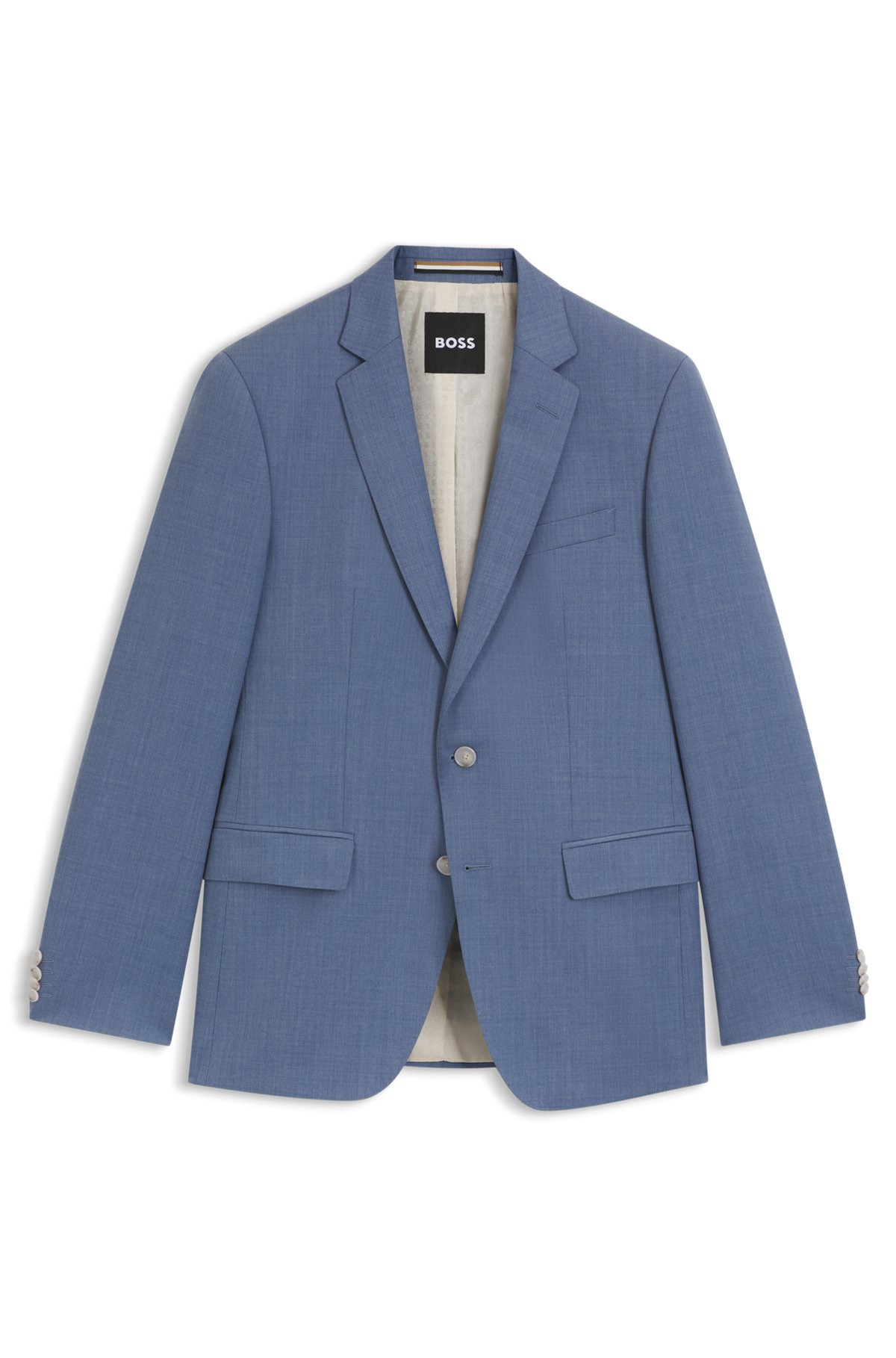 DETAILS H-Huge-B1 - 50469171 This BOSS Menswear suit jacket brings timeless elegance. Crafted in virgin wool with a serge weave. Constructed shoulders. Slim fit with natural stretch for ease. Slim fit Notched lapels Number of buttons: 2 Welt chest pockets Pockets top: Flap pockets Inside welt pockets Kissing buttons on the cuff Side vent Fully lined QUALITY & CARE INSTRUCTIONS Reduced Dry Clean Do Not Tumble Dry Do Not Bleach Iron Low Heat Quality: 100% Virgin wool, Lining: 65% Viscose, 35% Polyester, Sleeve lining: 100% Viscose, pocketing: 100% Cotton Do Not Wash
