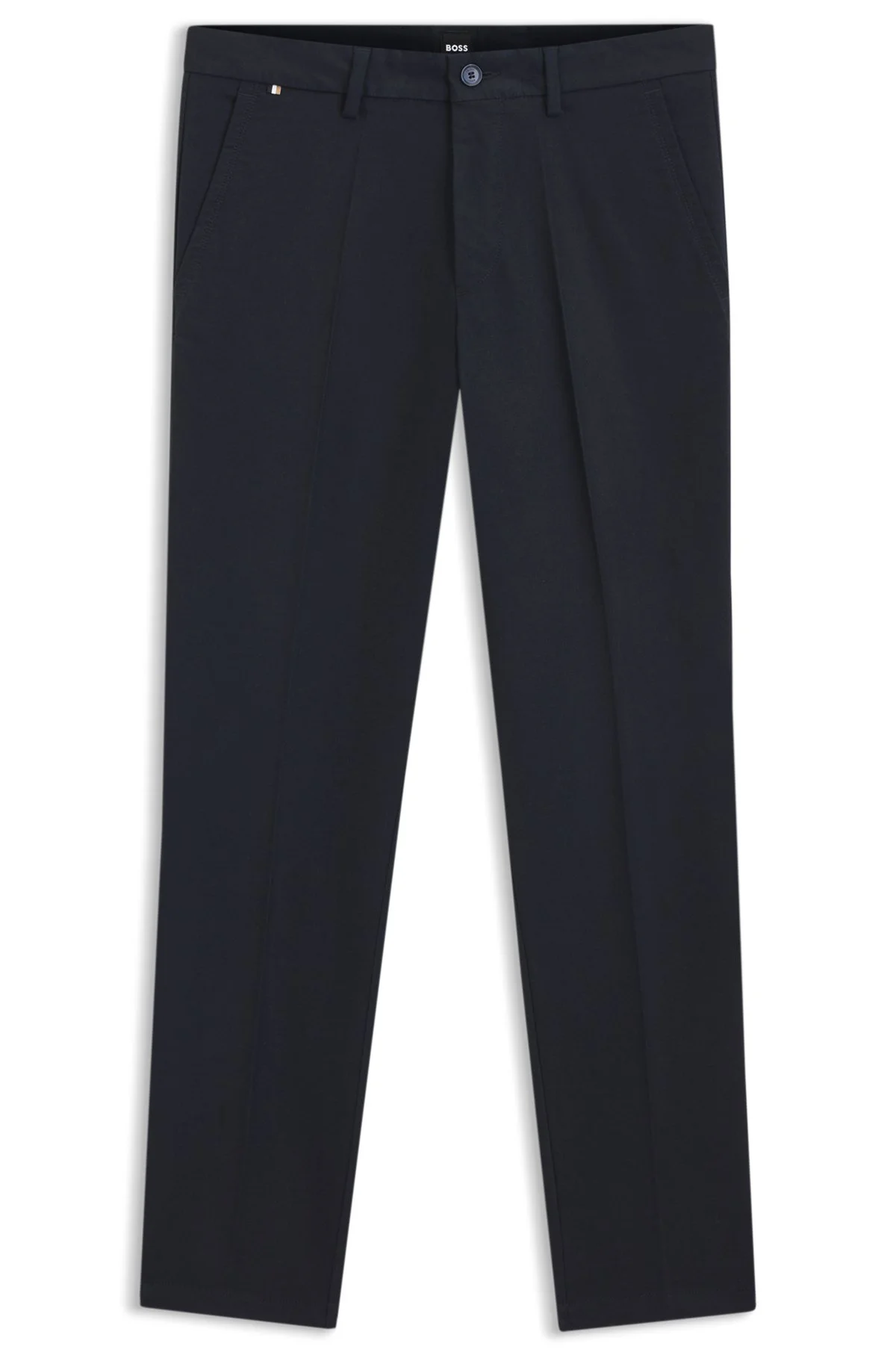 DETAILS In soft, cozy twill, these BOSS Menswear trousers are the ideal casual foundation. Tailored to a modern slim fit. Slim fit Regular rise Button and zip closure Pockets bottom front: French pocket Pockets bottom back: Welt pocket H-Kaiton1 - 50551059 QUALITY & CARE INSTRUCTIONS Do Not Bleach Machine Wash Cold Gentle Do Not Tumble Dry Material: 51% Cotton, 47% Modal, 2% Elastane, pocketing: 65% Polyester, 35% Cotton Iron Low Heat Reduced Dry Clean