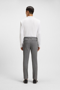 SIZE AND FIT The model wears a size 32/32 and is 6'1" tall with a, 36" chest, 29" waist and 36" hips. DETAILS H-Kaiton1 - 50546875 Woven with a dobby structure, these classic BOSS Menswear trousers are cut to a slim fit. Crafted in stretch fabric for comfort in movement. Slim fit Regular rise Button and zip closure Pockets bottom front: French pocket Pockets bottom back: Welt pocket QUALITY & CARE INSTRUCTIONS Do Not Bleach Iron Low Heat Quality: 62% Polyester, 33% Viscose, 5% Elastane, pocketing: 65% Polyester, 35% Cotton Reduced Dry Clean Machine Wash Cold Gentle Do Not Tumble Dry