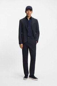 DETAILS Update your business-travel capsule with the wrinkle resistance and flexible stretch of these washable BOSS Menswear trousers. Cut to a defined fit. Slim fit Button and zip closure Elastic Waistband Pockets bottom front: Side slash pockets Pockets bottom back: Jetted pockets Partially lined P-Genius-JCWWGPK261F - 50553572 QUALITY & CARE INSTRUCTIONS Material: 45% Polyamid, 33% Polyester, 15% Viscose, 7% Elastane Do Not Tumble Dry Do Not Dry Clean Do Not Bleach mild professional wet clean Cold, gentle machine wash; reduced spin speed. Do Not Iron