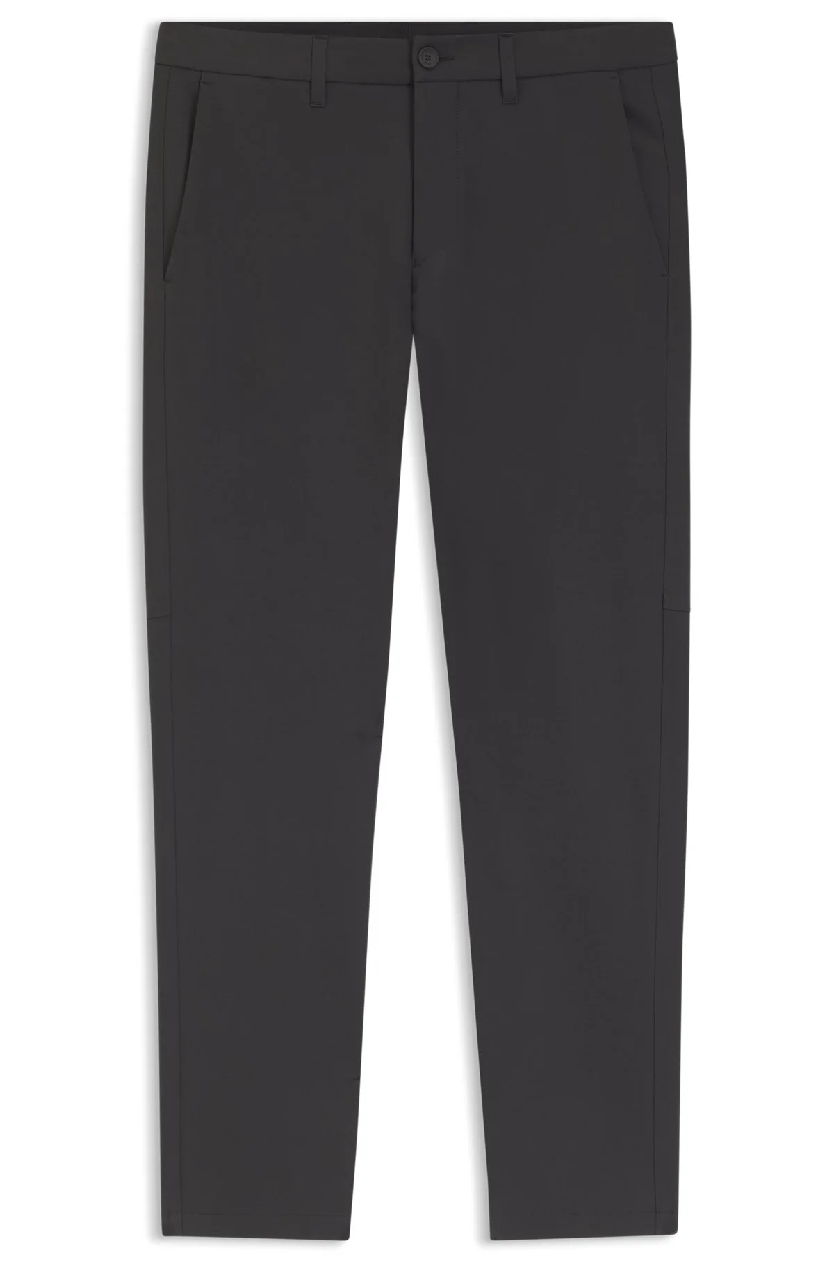 DETAILS Water repellent and stretchy, these slim BOSS Menswear trousers offer comfort and protection on active days. Easy-iron material. Integrated card holder. Tapered leg Slim fit Regular rise Button and zip closure Tapered leg Pockets bottom back: Patch pocket Fit foot width: 33,0 cm (13.0 inches) T_Commuter-Slim - 50534303 QUALITY & CARE INSTRUCTIONS Do Not Bleach Machine Wash Cold Gentle Do Not Tumble Dry Material: 95% Polyester, 5% Elastane, pocketing: 100% Polyester Iron Low Heat Reduced Dry Clean