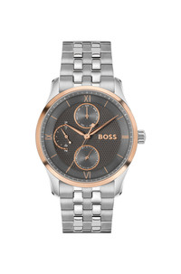 DETAILS Elevated by a multi-level, textured dial in gray, this BOSS Menswear watch goes perfectly with tailoring. Silver-tone steel. Multifunctional movement with subdials. Watch mechanism: multi-eye Dial color: Grey Strap material: Stainless steel Closure: Push-button deployment Case size: 1.61 in (41 mm) (0 inches) Water Resistance (in ATM): 5 ATM PRINCIPLE MASTER - 58564972 QUALITY & CARE INSTRUCTIONS Material: 100% Stainless steel