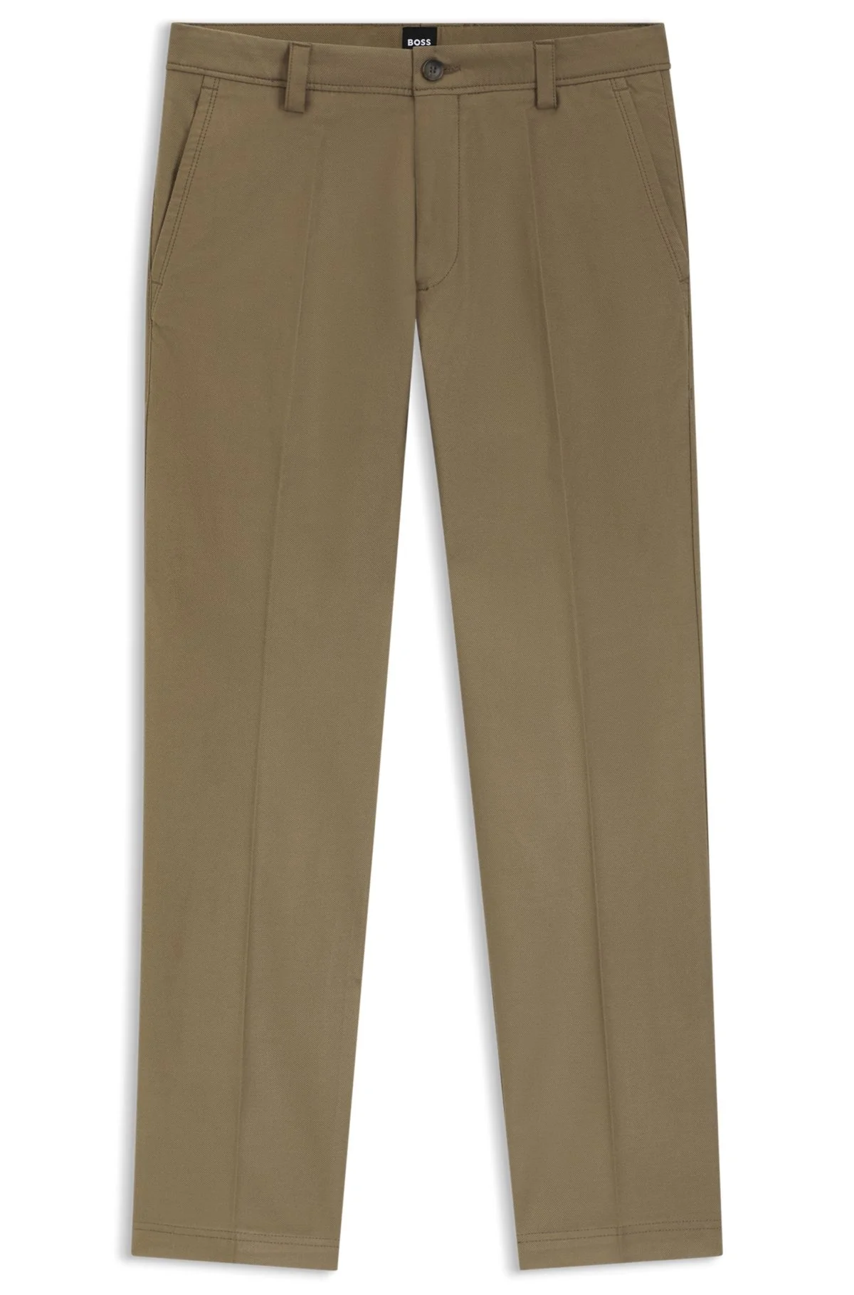 SIZE AND FIT The model wears a size 32/32 and is 6'2" tall with a, 37" chest, 30" waist and 37" hips. DETAILS With a casual straight fit, these BOSS Menswear trousers are so easy to build upon. Soft, stretchy twill made from a cotton blend. Straight fit Regular rise Button and zip closure Pockets bottom front: French pocket Pockets bottom back: Welt pocket C-Kent - 50551426 QUALITY & CARE INSTRUCTIONS Do Not Bleach Machine Wash Cold Gentle Do Not Tumble Dry Material: 51% Cotton, 47% Modal, 2% Elastane, pocketing: 65% Cotton, 35% Polyester Iron Low Heat Reduced Dry Clean