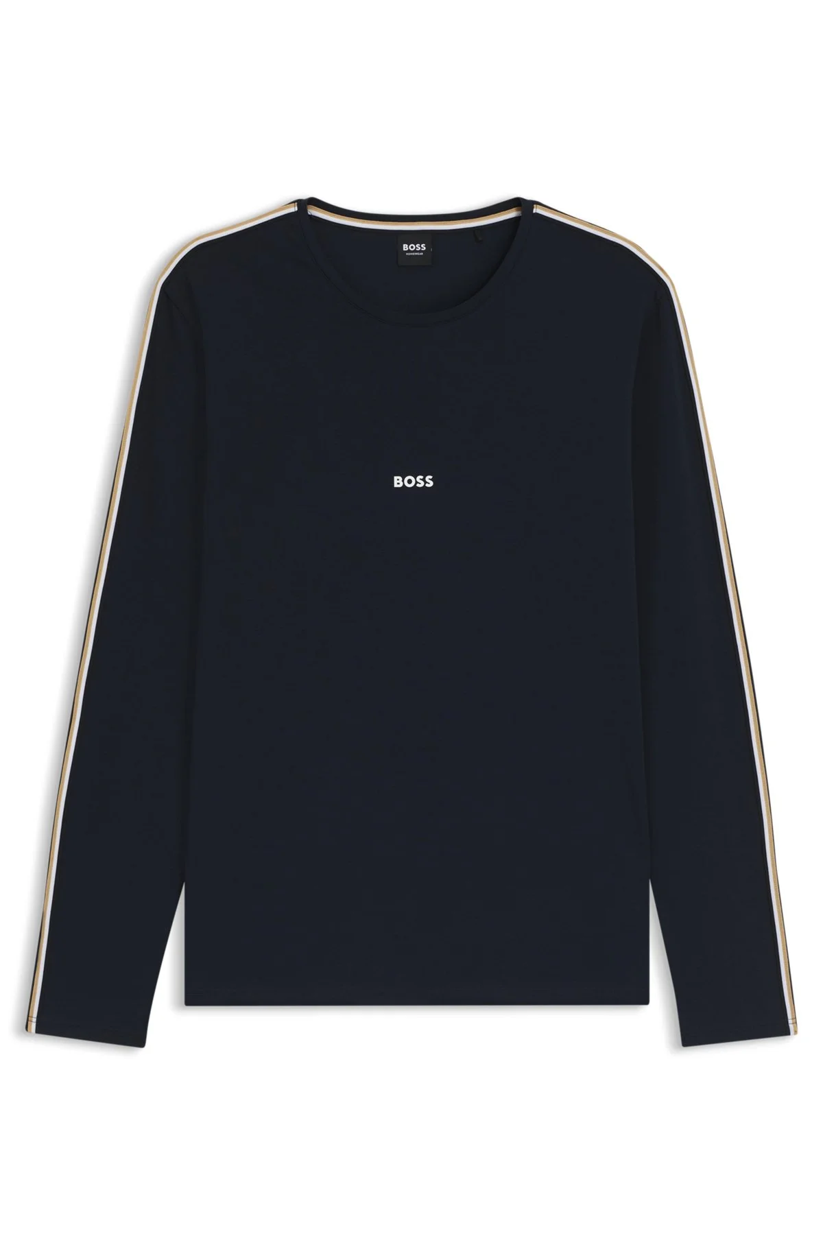 SIZE AND FIT The model wears a size M and is 6'1" tall with a, 38" chest, 31" waist and 37" hips. DETAILS Relax in comfort with the soft stretch cotton of this regular-fit BOSS Menswear pajama top. Contrast logo and signature-stripe tape. Regular fit Neckline: Crew neck Unique LS-Shirt - 50550484 QUALITY & CARE INSTRUCTIONS Iron Low Heat Do Not Dry Clean Quality: 95% Cotton, 5% Elastane Do Not Bleach Tumble Dry Low Heat Machine Wash Cold