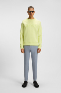 DETAILS Salbo - 50506119 An easy-wear sweatshirt in stretch cotton by BOSS Menswear. Cut to a straight fit, this layer features a sandwich-print logo at the chest. Regular fit Neckline: Crew neck Long sleeves Ribbed cuffs Standard length QUALITY & CARE INSTRUCTIONS Quality: 95% Cotton, 5% Elastane Do Not Bleach Do Not Dry Clean Machine Wash Cold Gentle Iron Low Heat Do Not Tumble Dry