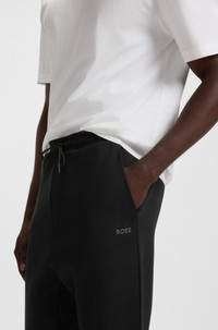SIZE AND FIT The model wears a size L and is 6'2" tall with a, 37" chest, 28" waist and 37" hips. DETAILS Hadiko - 50506141 Casual cuffed tracksuit bottoms by BOSS Menswear, cut to a straight fit in stretch material with an HD logo print. Regular fit Drawstring Pockets bottom front: Side pockets QUALITY & CARE INSTRUCTIONS Do Not Tumble Dry Do Not Bleach Machine Wash Cold Gentle Quality: 95% Cotton, 5% Elastane Iron Low Heat Do Not Dry Clean