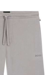 SIZE AND FIT The model wears a size M and is 6'1" tall with a, 38" chest, 29" waist and 37" hips. DETAILS Rib Shorts - 50509326 Drawstring pajama shorts by BOSS, designed in ottoman-structured stretch jersey and embroidered with a logo. Covered waistband Drawstring Pockets bottom front: Side pockets QUALITY & CARE INSTRUCTIONS Iron Medium Heat Machine Wash Warm Dry Clean Only Quality: 98% Modal, 2% Elastane Do Not Tumble Dry Do Not Bleach